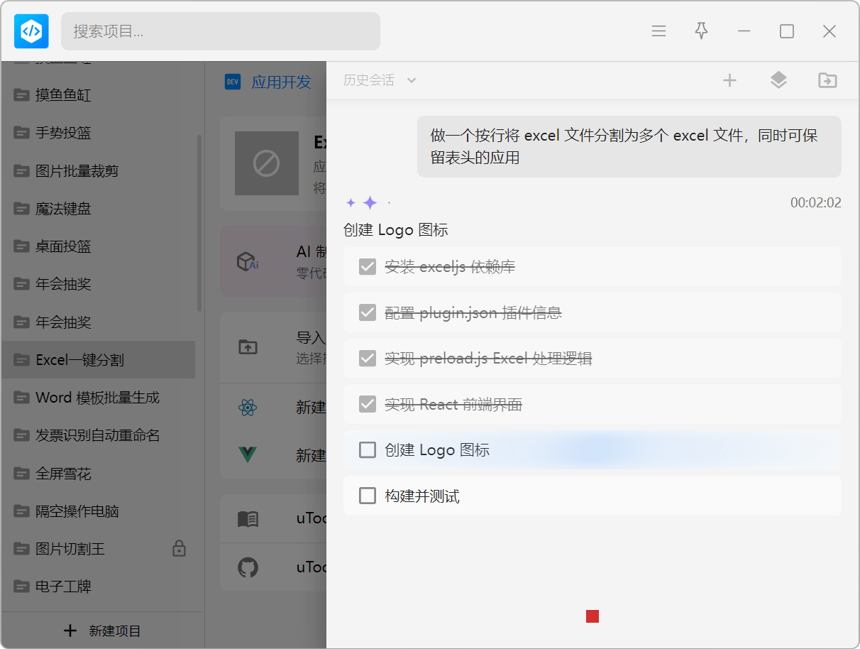 在 uTools 开发者工具中,一句话描述需求,AI 自动生成专业插件应用,让想法快速变成工具